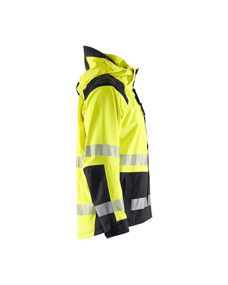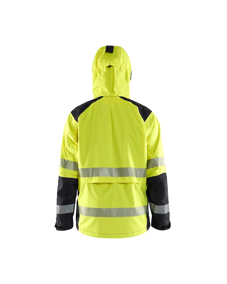 Hengittävä high-vis-kuoritakki, jossa on ohut vuori sekä teipatut saumat.