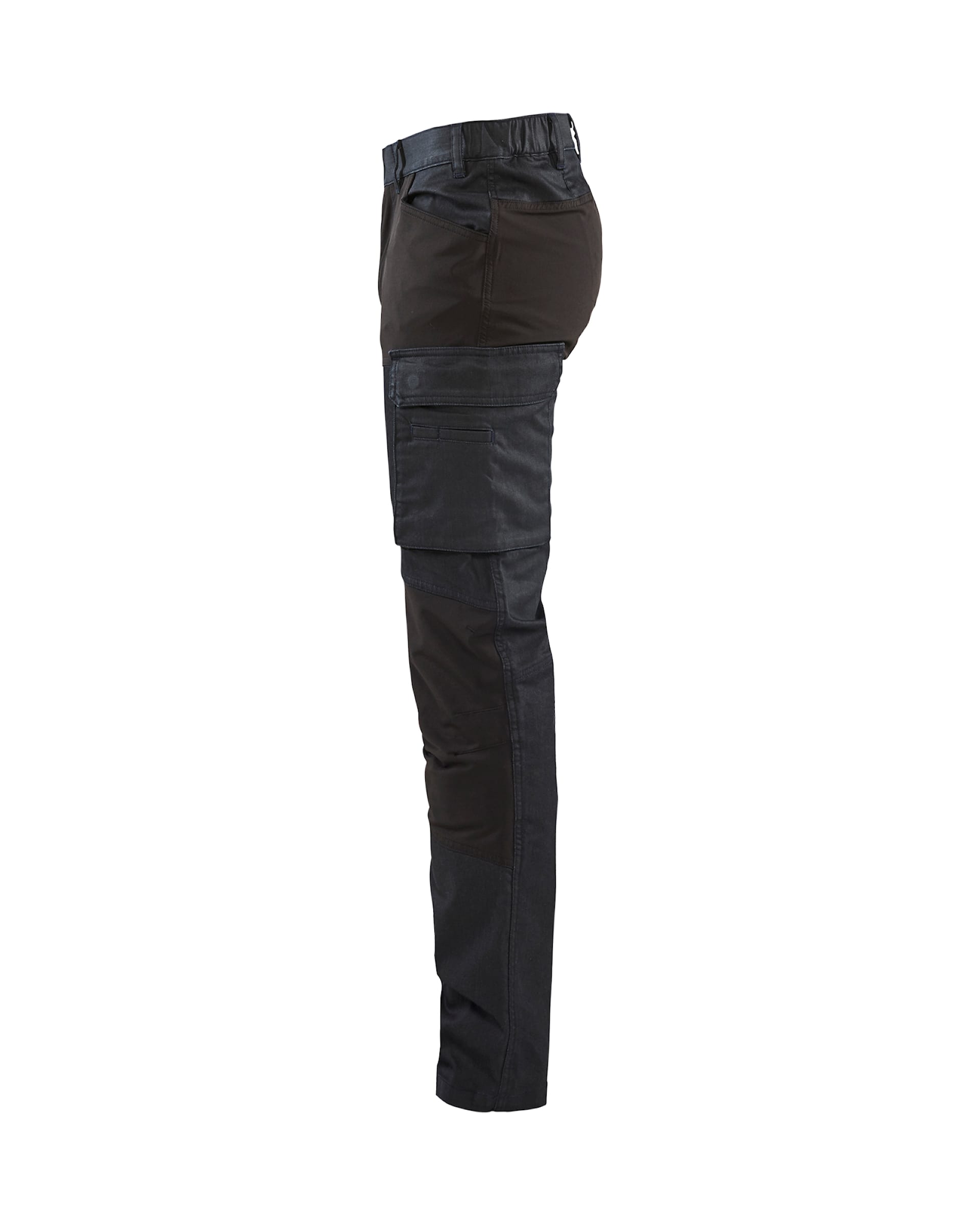 Esitaivutetut lahkeet ja joustava vyötärö lisäävät liikkuvuutta ja käyttömukavuutta.