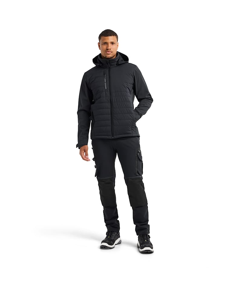 Tyylikäs ja käytännöllinen hybriditakki, joka tarjoaa lämpöä ja liikkuvuutta samassa paketissa. Takissa on lämmin tikattu etu- ja takaosa, jotka suojaavat viileältä, sekä joustavat softshell-hihat, jotka takaavat erinomaisen käyttömukavuuden ja liikkumavapauden.