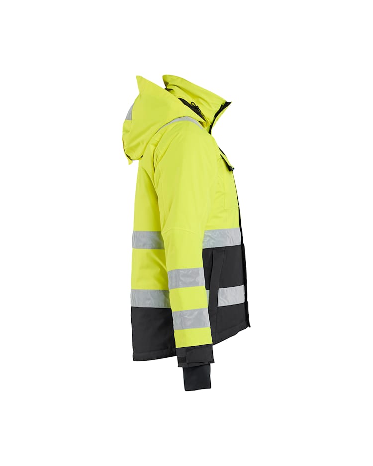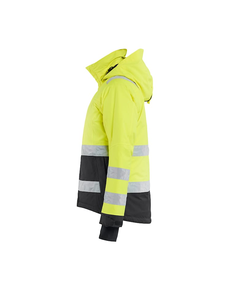Kaksisuuntainen vetoketju, muotoillut hihat, pidennetty selkäosa ja 50 mm heijastimet parantavat käyttömukavuutta ja näkyvyyttä. Sertifioitu EN ISO 20471 luokka 2 ja EN 343.