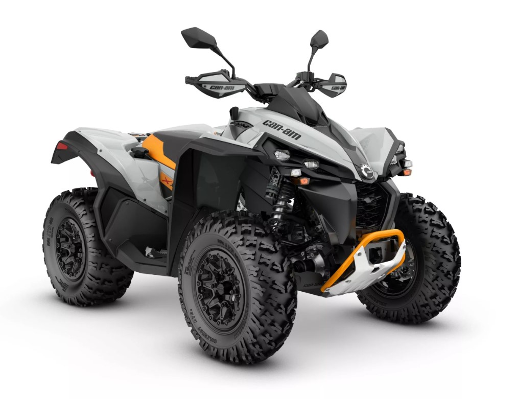 Ergonominen alumiininen kartioprofiilinen ohjaustanko ja täysin suojaavat käsisuojat lisäävät ajomukavuutta ja hallintaa. Tyylikäs X-paketin väritys, grafiikka ja istuinsuoja antavat Renegadelle tunnistettavan, sporttisen ilmeen, joka heijastaa sen suorituskykyä.