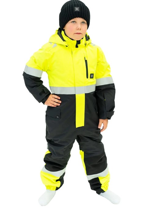 6205- |Kestävä, lämmin ja vedenpitävä lasten huomiovärinen talvihaalari.
