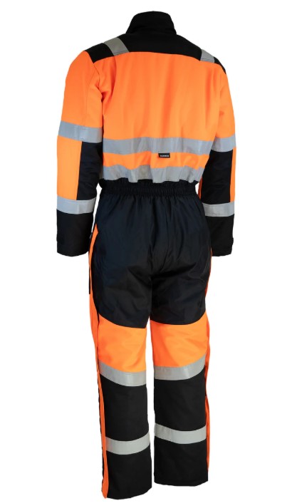 Kaksisuuntainen etuvetoketju, selkälaskokset ja pitkät lahjeketjut helpottavat haalarin pukemista ja riisumista.