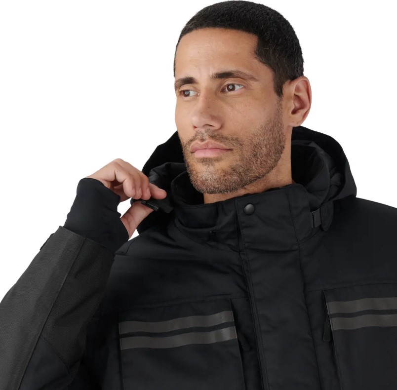 Takki on suunniteltu käytännöllisyyttä silmällä pitäen: kahdeksan monikäyttötaskua pitävät tärkeimmät varusteesi järjestyksessä, irrotettava huppu antaa joustavuutta säiden muuttuessa ja säädettävät hihansuut ja kaulus varmistavat istuvuuden. Lisäksi takissa on heijastavia yksityiskohtia näkyvyyden parantamiseksi, vahvistetut kyynärpäät ja kyynärvarret sekä E LinQ-järjestelmään sopivat kiinnityspisteet varusteille. RE Motors+1