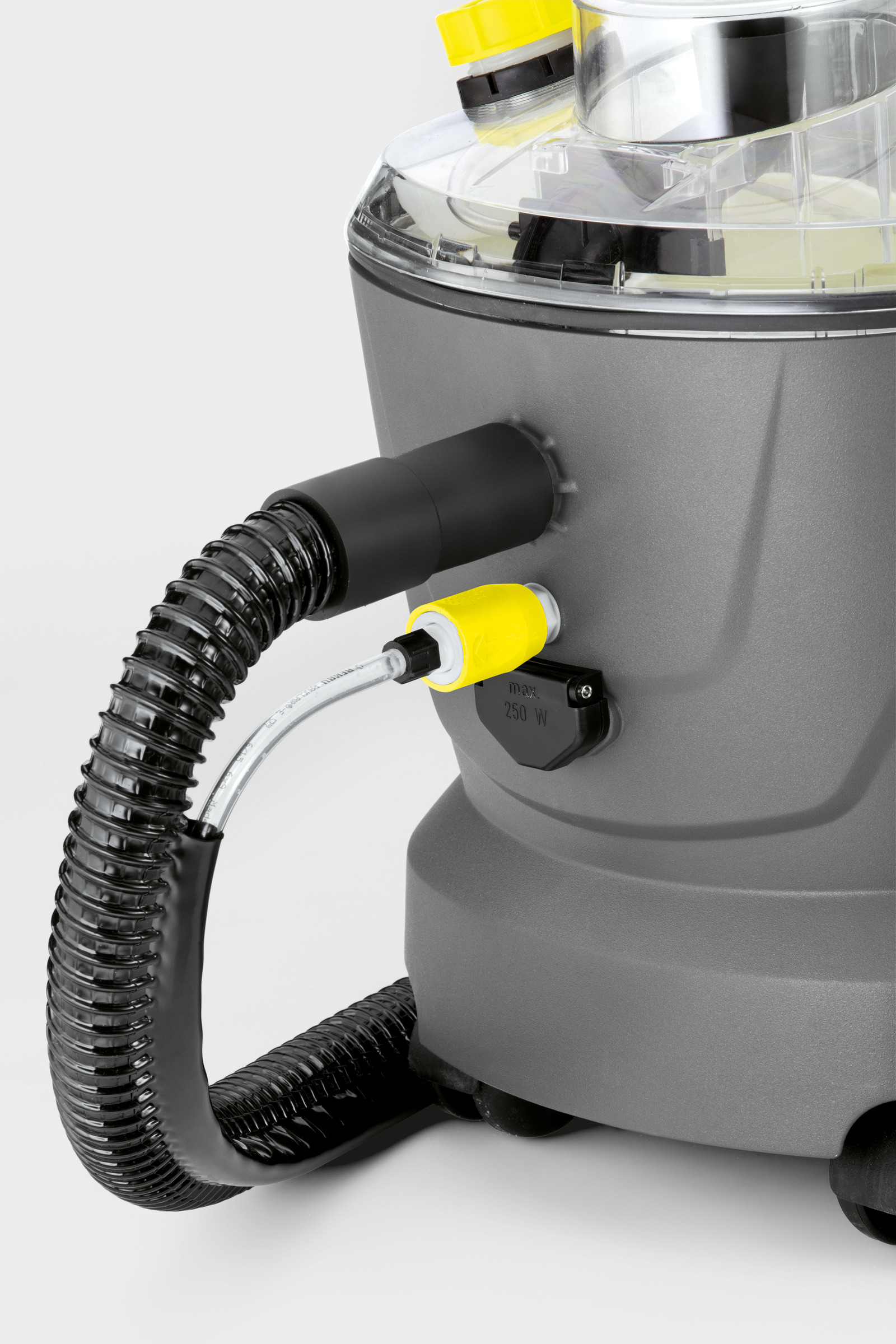 Tässä mallissa on pesua tehostava 2 baarin suihkutuspaine ja vakiovarusteena mattosuulake. Laitteessa on valmis adapteri moottoroidulle PW 30/1 tehoharjalle.