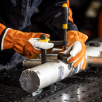 Käsine hiontatöihin: vuoriton lyhyt täysnahkakäsine, joka sopii erinomaisesti työpajan yleistehtäviin. Joustava ja kestävä, ja halkaistua nahkaa oleva kämmenselkä suojaa hyvin kipinöiltä.