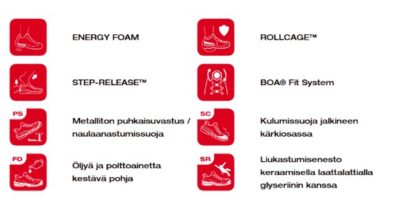 ENERGY FOAM -pehmuste, ROLLCAGE™-kantatuki, BOA® Fit -kiinnitys ja vedenhylkivä nupukkinahka takaavat erinomaisen mukavuuden ja suojan.