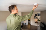 Mukana 9 V paristo ja testitoiminto — helppo asentaa ja huoltaa.