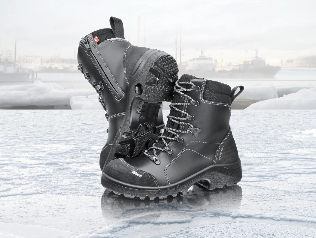 Jalkineissa pohjarakenteeseen integroitu Sievi Spike®-nastamekanismi, joka mahdollistaa nastojen kääntämisen sisään ja ulos riisumatta jalkinetta.