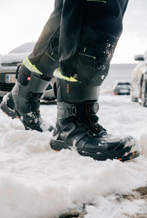 Vedenpitävä ja lämpimästi vuorattu korkeavartinen turvakenkä, jossa BOA®-kiinnitys ja leveä XL-lesti (koot 39-48) takaavat helpon pukemisen ja mukavan istuvuuden.