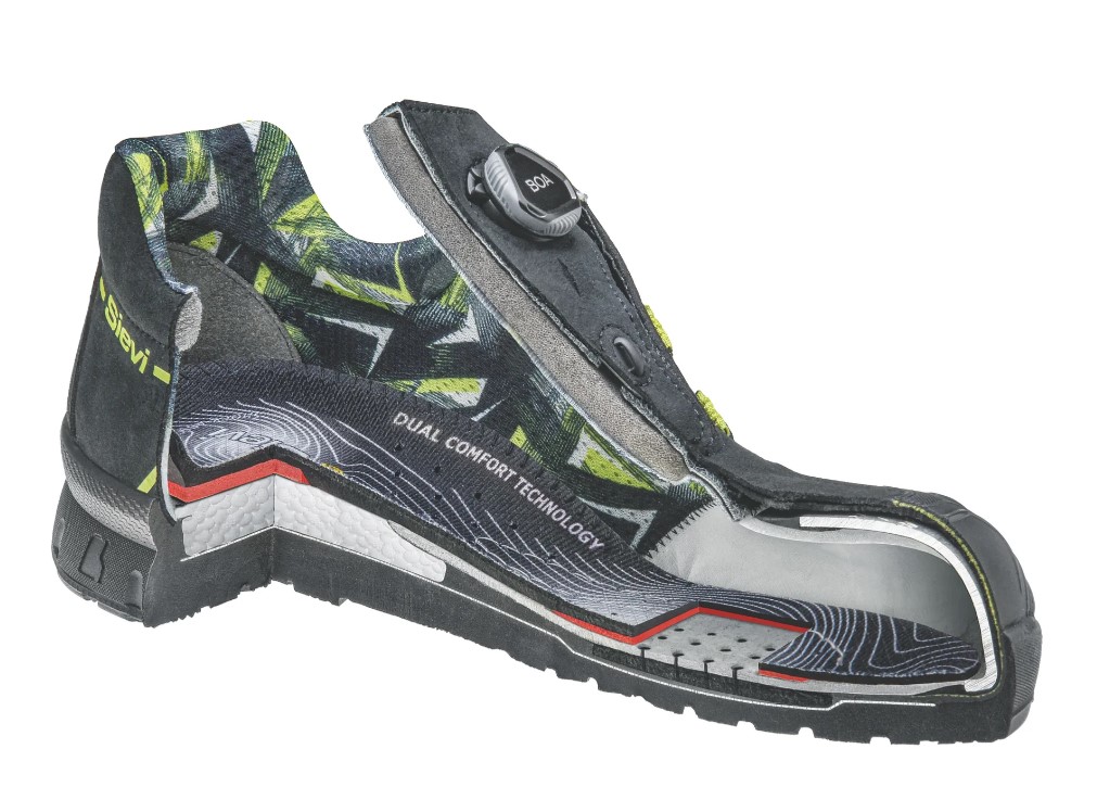 S3-suojaluokan SieviAir®-pohjaratkaisulla oleva puolikenkä BOA®-mekanismilla, teräksisellä naulaanastumissuojalla ja alumiinivarvassuojalla.