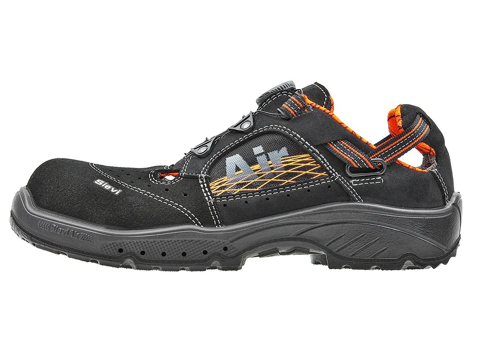 Teräksisellä naulaanastumissuojalla komposiittisella varvassuojalla varustetut sandaalit, joiden SieviAir®-pohjaratkaisu parantaa tehokkaasti jalkineiden ilmanvaihtoa ja käyttömukavuutta.