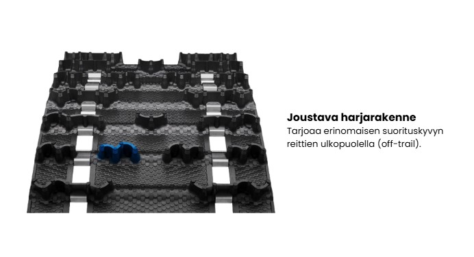TRACK 15 × 128 × 1,6 on suunniteltu tarjoamaan erinomaista suorituskykyä, kestävyyttä ja luotettavuutta kaikissa talviolosuhteissa. Se on täydellinen valinta kuljettajille, jotka kaipaavat telamatoltaan varmaa pitoa, tasaista ajotuntumaa ja pitkäikäisyyttä niin reiteillä kuin vaativammassakin enduro-ajossa.